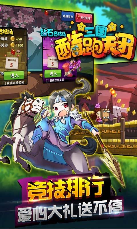 三国酷跑天团是一款以三国为背景的动作竞技类跑酷手游。在这款游戏中,玩家将化身为赵云、小乔、郭嘉等三国名将,穿越至三国时代,展开一场场惊心动魄的跑酷冒险。游戏画面精美,角色设计q萌,同时融合了战斗、宠物养成、装备收集等多种元素,为玩家带来了丰富的游戏体验。