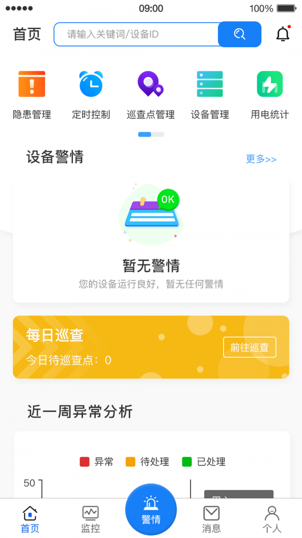 4. 查看监控:在首页中,用户可以查看最新的设备警情信息和待巡查点数量,快速进行每日巡查。