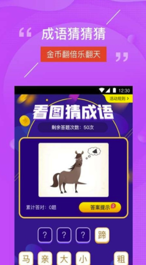 2. 收益提现:猜对成语可获得收益,满足条件后可提现至指定账户。
