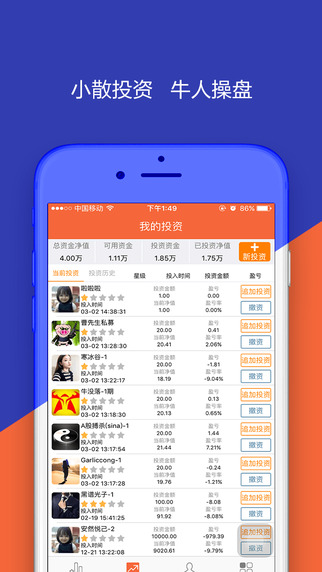 人人积金app为操盘牛人和散户投资人提供了一个高效、透明的交易平台,使得双方能够在这个平台上实现共赢。2.