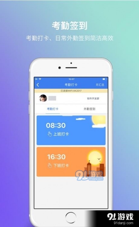 3. 高效审批:支持请假、出差等多种申请的一键发起和审批,实现高效审批,无纸化办公。