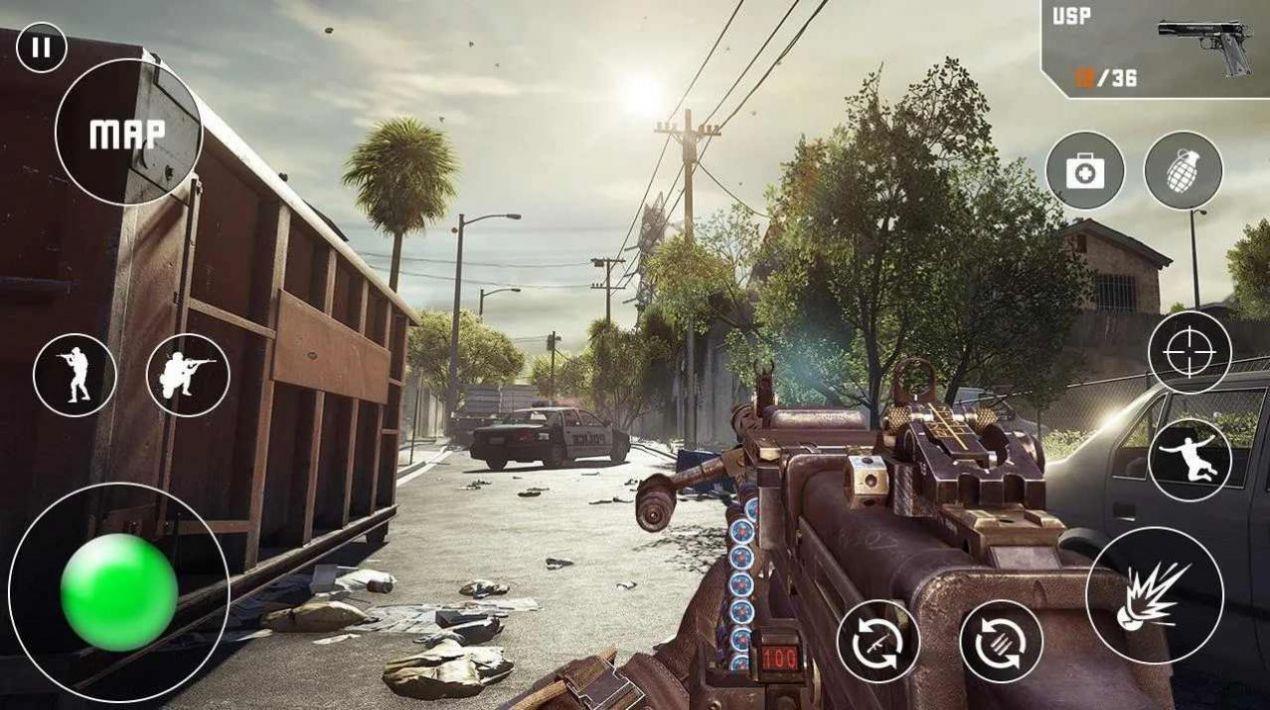 3. 游戏操作:游戏采用虚拟按键和触屏操作方式,玩家可以通过滑动屏幕和点击按键来控制角色的移动、射击和切换武器等操作。