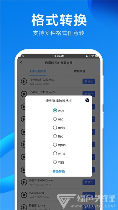 3. 格式转换:软件支持多种音频格式转换,如mp3、aac、wma等,一键即可制作所需格式的音频文件。