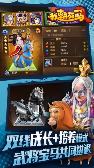 2. 游戏中武将和马匹双线成长,多种培养模式,创新鬼畜交融系统。
