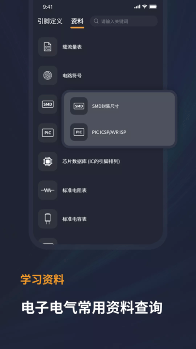 3. 浏览内容:在软件主界面,可以浏览到电动机、转换、引脚定义、公式、资料等各个模块的内容。