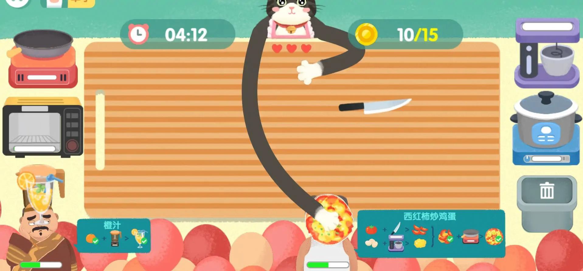 4. 角色设定:玩家扮演的猫咪厨师拥有长长的手臂和滑稽的外观,增加了游戏的趣味性和吸引力。