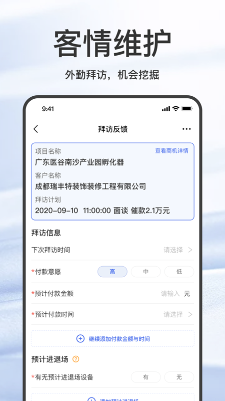 2. 客情维护功能,帮助用户更好地管理客户关系,挖掘潜在商机。