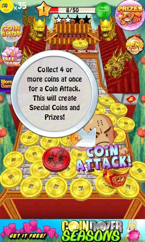 1. 游戏目标:玩家需要通过投放硬币并操纵推杆,将金币从推币机中推出,积累财富并解锁奖品。