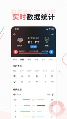 2. 数据中心强大,提供详尽的球队和球员数据统计,帮助用户深入了解比赛。