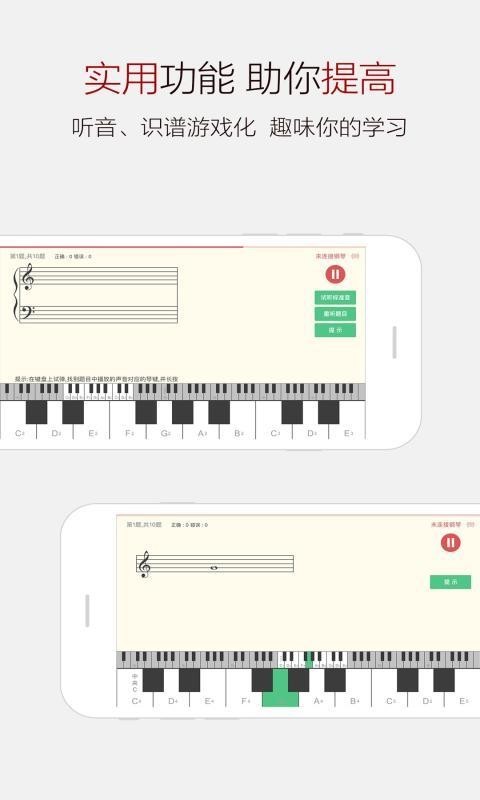 2. 虚拟琴键模拟演奏:即使不会识谱,用户也能通过虚拟琴键模拟演奏功能学会弹琴。