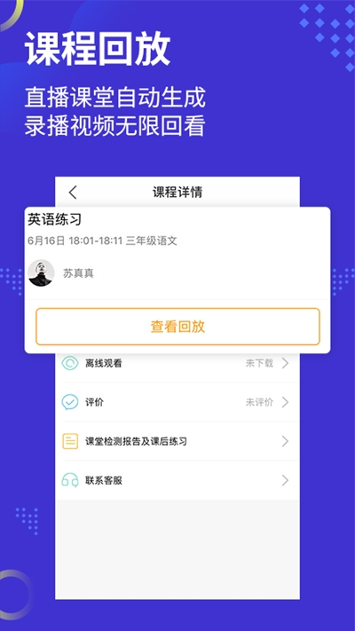 2. 支持直播课堂自动生成回放,录播视频无限回看。