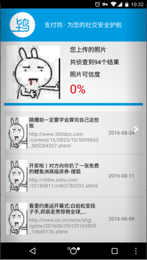 支付鸨安卓版是一款功能强大的图片识别软件,它旨在帮助用户快速识别图片的真实性及其在网络上的流传情况。通过利用百度图片、360识图、搜狗图片等专业技术支持,支付鸨能够一键快速查询当前图片是否有其他途径来源,为用户提供图片鉴定和可信度评估服务。这款软件不仅适用于社交网络头像的验证,还能帮助用户避免被虚假图片所欺骗,为用户的网络安全保驾护航。