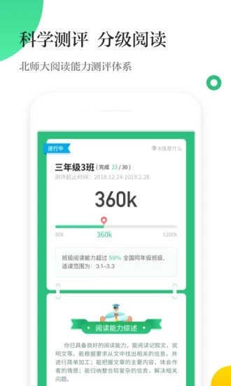 2. 分级阅读:依据北京师范大学课程与教学研究院独家授权的中小学中文阅读分级体系,为学生提供个性化、交互式的移动阅读教学解决方案。
