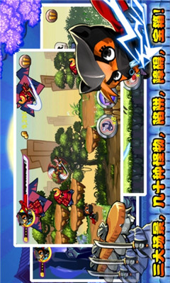 《喵星忍者高画质版》是一款将萌系元素与硬核动作完美融合的安卓平台横版跑酷游戏,玩家将操控身怀绝技的喵星忍者,在充满东方奇幻色彩的场景中展开冒险。游戏以40.23MB的精简体积承载了媲美主机级的视觉表现,三大主题场景(竹林秘境、火山熔岩、樱花神社)均采用高精度2.5D建模,搭配动态光影与粒子特效,使火球术的灼热轨迹、影分身的残影留存、旋风斩的刀光漩涡等忍术释放效果极具视觉冲击力。游戏独创的「手势符文战斗系统」突破传统跑酷操作框架,玩家需根据敌人头顶的符号实时绘制对应轨迹完成击杀,配合触屏点击的跳跃、二段跳、飞镖射击等基础操作,形成「跑酷+解谜+动作」的三重核心玩法,在24个关卡中挑战20余种形态各异的怪物(如持伞的艺伎怨灵、喷吐毒雾的蛤蟆仙人、驾驭机甲的武士傀儡)与三大史诗级BOSS(尾兽形态的九命猫妖、操控火焰的凤凰巫女、挥舞巨刃的鬼面将军),体验从平民装备到传说级神装的15种形态进化,最终登顶全球排行榜争夺「忍界至尊」称号。