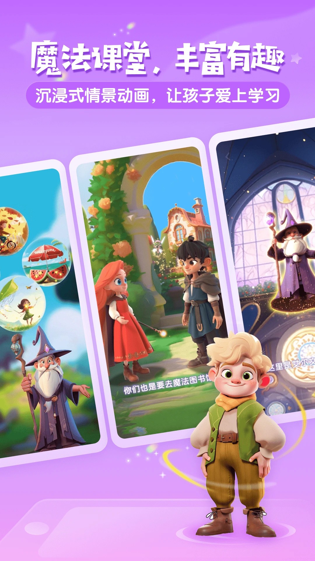 1. 魔法世界NPC互动:用户化身“魔法学员”,与虚拟角色(如精灵店主、骑士伙伴)进行第一人称对话。角色设计贴合儿童审美,对话内容幽默风趣,例如用“用魔法咒语换糖果”的设定引导孩子练习祈使句,增强学习趣味性。