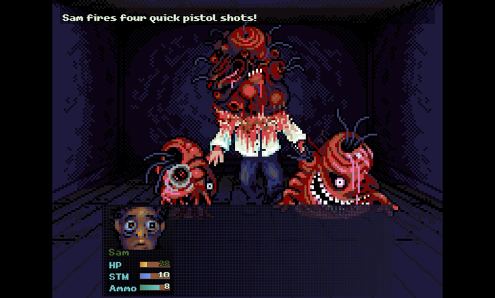1. 克苏鲁式身体恐怖美学:像素画风下隐藏血肉蠕动的墙壁、眼球监控装置等细节,怪物设计融合环境元素(如与汽车融合的“汽车人”、与打字机融合的“文字杀手”),视觉冲击力极强。