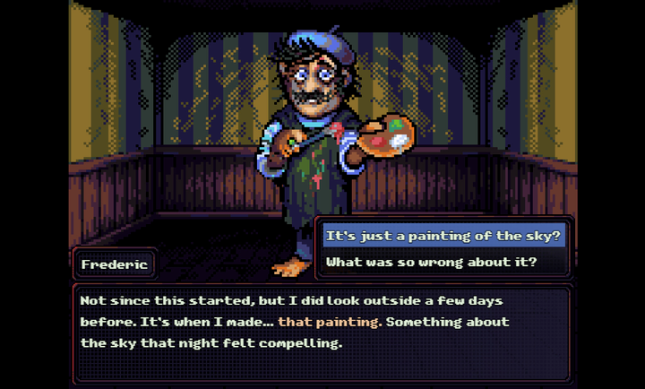 3. 多维度角色互动系统:NPC性格各异,部分角色会逐渐变异或精神错乱。例如,邻居可能突然胸口长出巨眼,而盟友“丽”需通过战斗招募,后续互动可解锁技能。