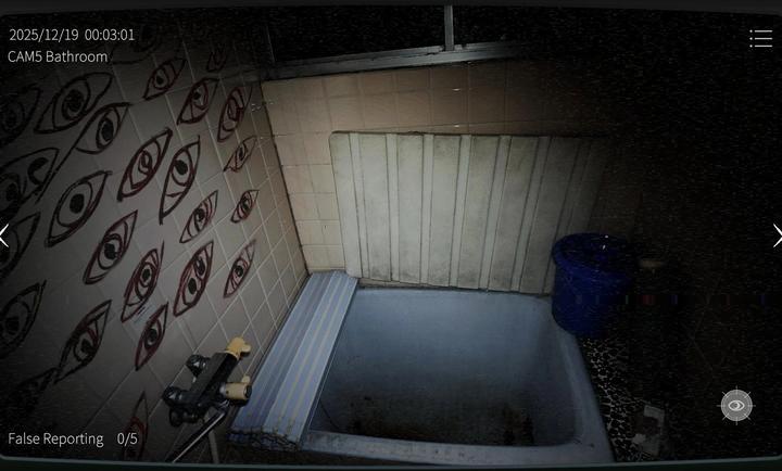 1. 多摄像头切换机制:每处物业配备多个监控视角,玩家需通过滑动屏幕或点击摄像头图标自由切换,例如在“车站”场景中,需同时观察候车厅、站台、厕所等区域的异常,部分异常仅在特定视角下可见(如夜视模式下的绿色光斑或普通模式下的阴影移动)。