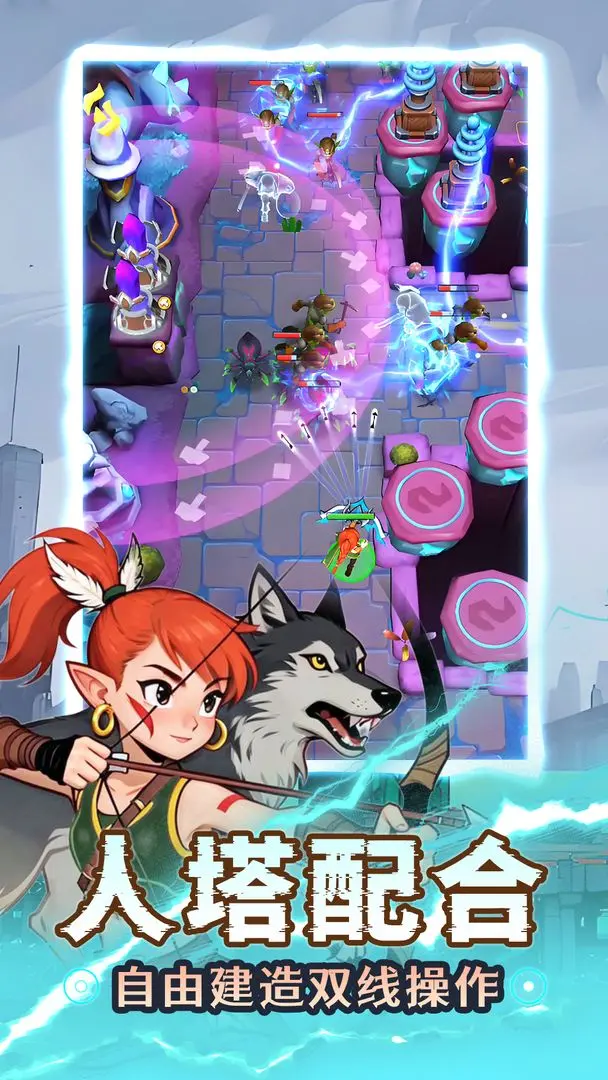 1. 双线操控战斗:玩家需左手滑动屏幕控制英雄移动与自动攻击,右手在关键位置建造防御塔或陷阱。例如在森林关卡中,可利用树木掩护英雄偷袭敌人,同时在开阔地带布置火球塔形成火力网,实现人塔协同作战。