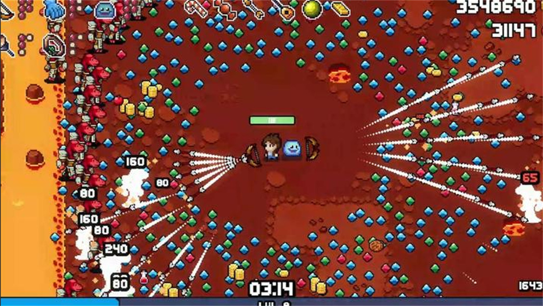 1. 像素美学与动态特效:采用复古像素画风,角色攻击时产生密集弹幕特效,如火焰史莱姆的环形火墙、冰霜史莱姆的雪花矩阵,视觉冲击力堪比3A大作,同时保持低设备占用率。