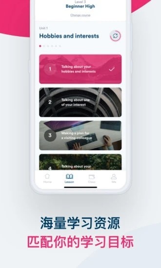 2. 该软件内置了1000+小时的学习资源,覆盖真实生活场景,如机场值机、餐厅点餐等,结合互动练习与情景模拟,帮助用户摆脱“哑巴英语”。