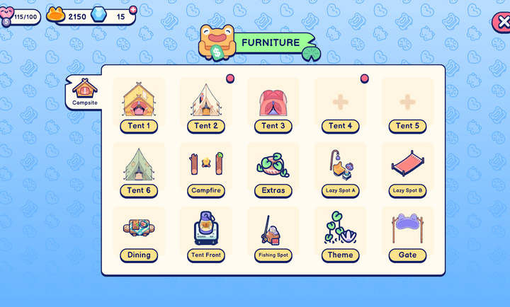 4. 布局优化技巧:将高频访客(如每日必来的“退休教师青蛙”)的帐篷布置在靠近烹饪台的位置,减少其移动时间;将娱乐设施(如棋牌室、K歌亭)集中布置,形成“活动中心区”,提升群体互动概率。