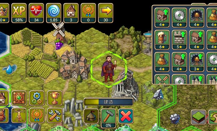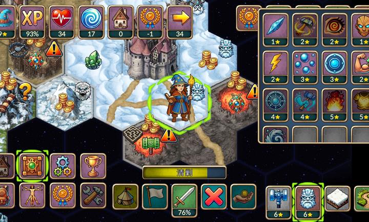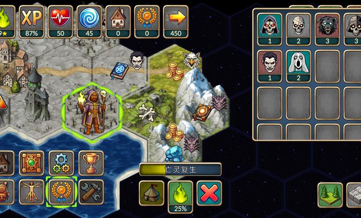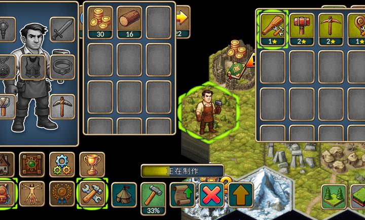 1. 高自由度策略决策:玩家可自由选择起始国家与地势,每一步移动需权衡探索遗迹获取史诗战利品的风险,或清理安全区域稳定获取资源,例如在森林砍树获取木材时可能遭遇老鼠袭击,需灵活应对。