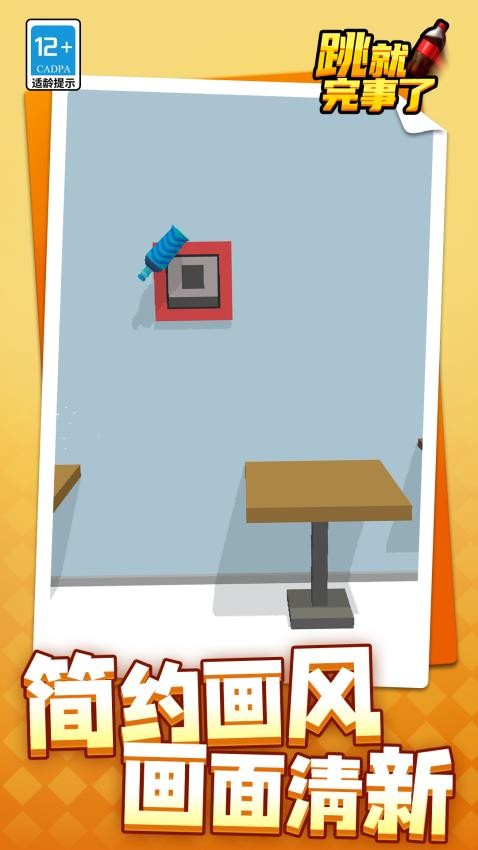 《跳就完事了付费版》是一款以物理模拟为核心、融合创意关卡设计的安卓平台休闲跳跃游戏,付费版在原版基础上解锁了全部皮肤、道具及高难度关卡,玩家可操控矿泉水瓶、可乐罐等50余款个性化瓶身,在客厅、厨房等十余种家居场景中展开跳跃冒险。游戏通过单指点击控制瓶子翻转与跳跃,需精准降落在沙发、冰箱等目标平台,途中可拾取弹簧垫、减速气泡等道具突破机关,200余个关卡从基础跳跃到连续弹跳逐步升级,配合清脆音效与简约画风,为玩家提供兼具解压与挑战的沉浸式体验。