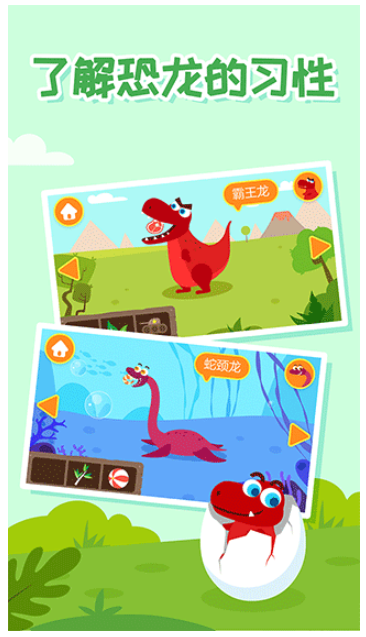 1. 场景探索引导:首次进入游戏后,主界面呈现开放式地图,孩子可自由点击丛林、火山、沼泽等场景,通过滑动屏幕触发隐藏恐龙动画,收集知识卡片解锁新区域。例如,在“红杉峡谷”发现特暴龙幼崽时,系统会弹出简短动画演示其躲避迅猛龙的生存技巧。