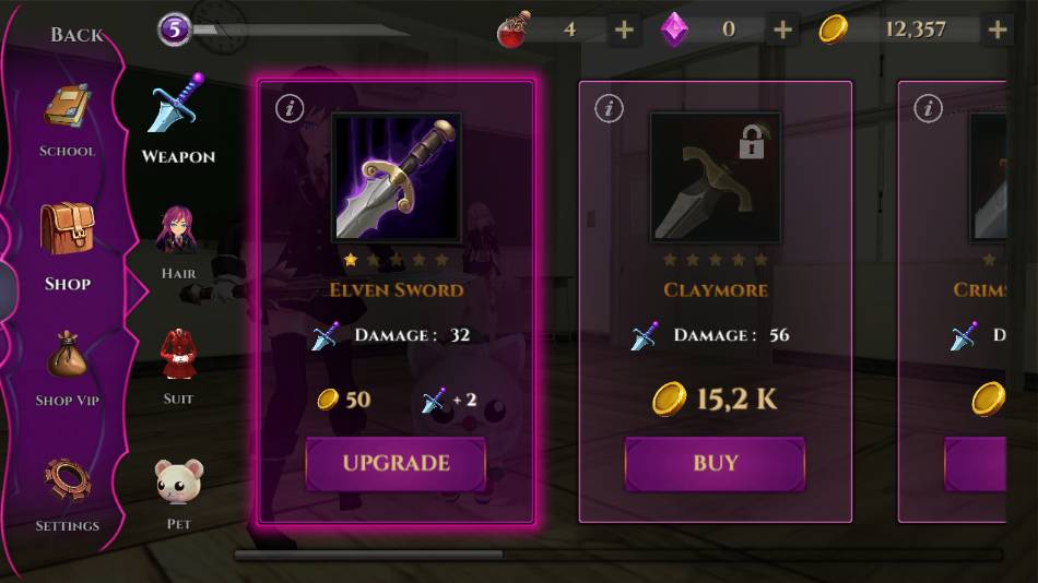 2. 深度角色养成与自定义系统:玩家可通过金币购买武器、服装、发型及宠物,打造个性化角色形象。例如,装备长剑提升近战攻击力,携带宠物增强辅助能力,甚至通过解锁新技能应对不同战斗场景,如“硬模式”下剑的特殊效果可应对高难度挑战。