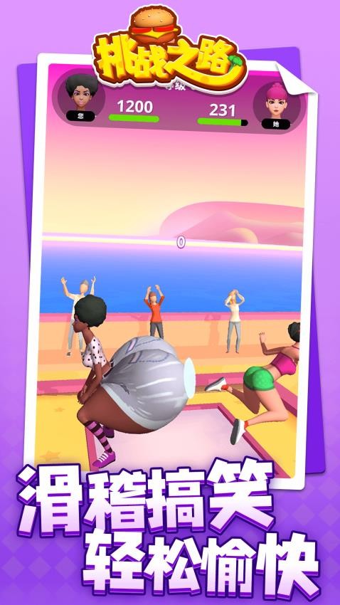 挑战之路最新版是一款融合跑酷与解谜元素的安卓休闲益智游戏,以卡通画风和滑稽搞怪的场景设计为核心,玩家需操控角色在充满机关陷阱的赛道上冲刺,通过跳跃、滑行等操作躲避障碍,同时收集金币解锁新道具与场景。游戏以“减肥挑战”为主题,将趣味剧情与高难度关卡结合,提供单人闯关与多人竞速模式,支持邀请好友组队突破机关封锁,在肾上腺素飙升的跑酷过程中体验脑力与反应力的双重考验。