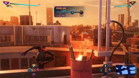 2. 开放世界探索:地图面积较前作扩大近一倍,新增皇后区与布鲁克林区域,玩家可通过蛛丝摆荡、蛛网翼滑翔、快速传送点等方式高效移动,城市中隐藏着蜘蛛机器人、犯罪事件等收集要素。
