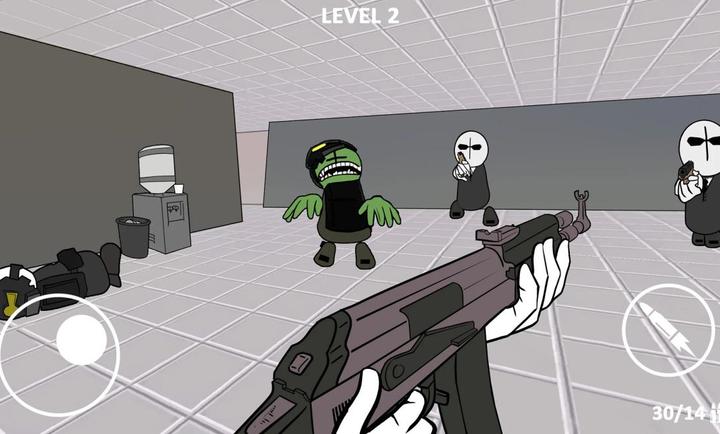 1. 核心玩法:以第一人称视角操控角色移动与射击,通过左侧虚拟轮盘控制走位,右侧射击键手动瞄准或开启自动射击。战斗强调精准爆头与资源管理,子弹需通过消灭敌人获取,需合理规划弹药消耗。
