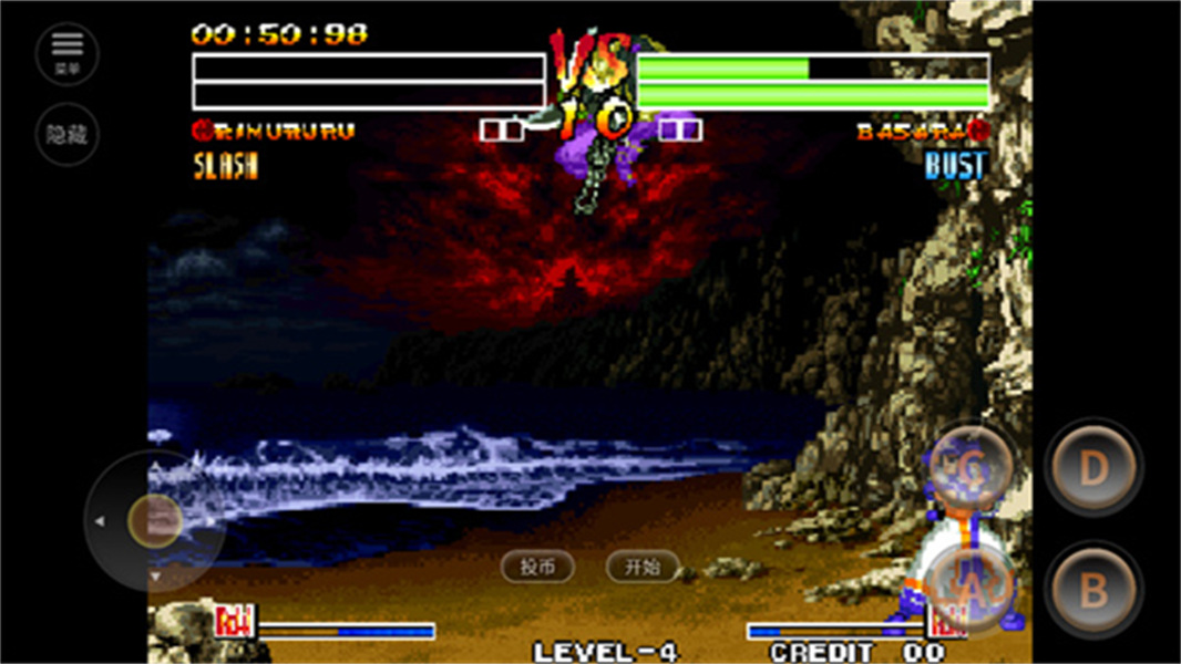 2. 怒气管理技巧:剑豪等级角色可通过「ABC」爆发怒气进入无敌状态,但时间槽会随体力减少而缩短,需在关键时刻使用「一闪必杀(BCD)」或「自动连斩(ABC)」反杀对手。
