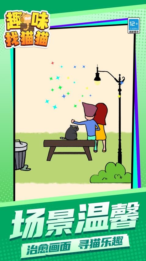 1. 多维度场景探索:游戏提供客厅、花园、咖啡馆等超30种主题场景,每个场景的布局与隐藏逻辑随关卡推进不断变化。例如,夜市场景中猫咪可能藏在灯笼后或小吃摊的纸箱中,而房间场景则需关注窗帘褶皱、书架缝隙等细节,动态天气与时间系统还会实时改变场景氛围与猫咪位置。
