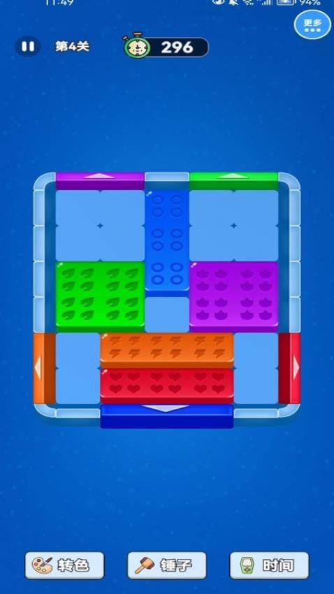 1. 道具系统:内置锤子道具可强制消除单个方块,颜色修改功能能直接改变方块属性,加时功能则为高难度关卡提供容错空间,形成“应急手段+策略支持”的互动模式。