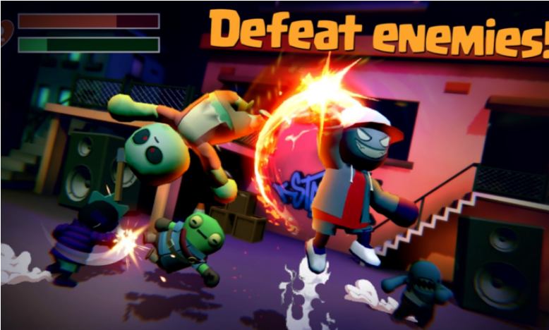 2. 动态物理引擎:角色被击飞时会根据受力方向呈现不同抛物线轨迹,甚至可能撞碎背景建筑(如击飞对手撞碎广告牌可获得额外积分),环境破坏效果直接影响战斗局势。