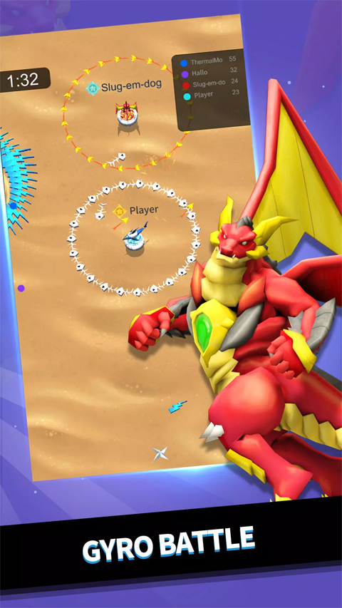 3. 动态战场机制:每张地图包含高低落差、黑洞漩涡等特殊地形,玩家可利用障碍物躲避攻击或触发机关逆转战局,例如在“熔岩裂谷”地图中,靠近岩浆区域的陀螺会因高温导致旋转速度衰减。