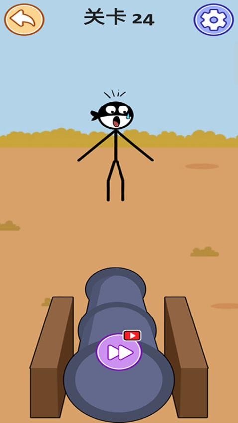 2. 关卡目标:每关需在限时内消灭所有敌人,优先攻击携带武器的火柴人,避免被围攻;通关后获得金币,用于解锁新武器或升级角色属性。