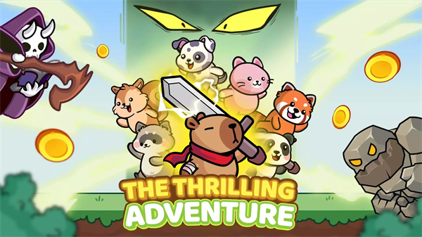 2. 深度成长系统:玩家可通过收集金币升级水豚的力量、血量与攻击速度,探索隐藏区域获取稀有强化道具,解锁“火焰剑”“疾风靴”等装备,形成“收集-强化-突破”的闭环成长链,满足探索欲与成就感。