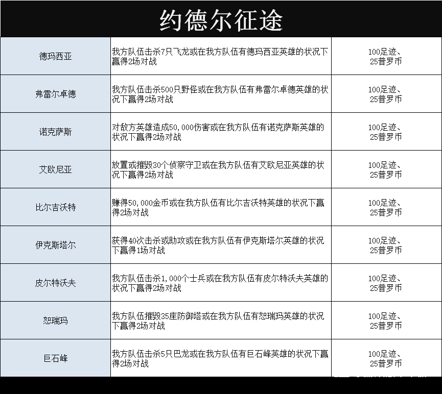 这次新活动和之前推出的活动性质相差不多,同时通过完成任务来获得奖励,不过在奖励方面可以看到,并没有直接发放蓝色精粹和英雄宝箱,而是给予了足迹这个全新的奖励。