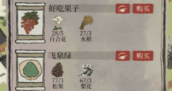 好吃果子,需要玩家使用5个百合花和3个水稻来进行兑换。