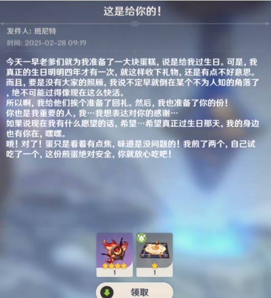 原神班尼特生日奖励是什么?角色过生那天,一般都会收获庆生福利。那么原神班尼特生日奖励是什么呢?接下来就让小编带来玩法详情,一起来了解下吧。