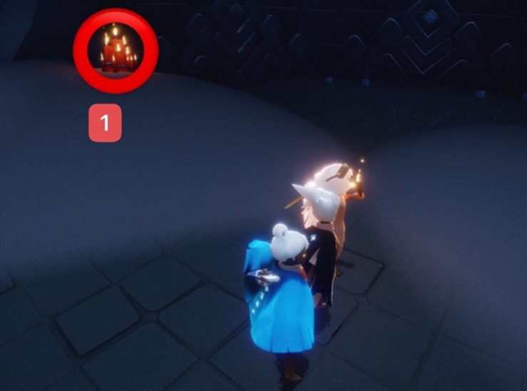 大蜡烛在禁阁顶楼,位于左侧的台阶上。