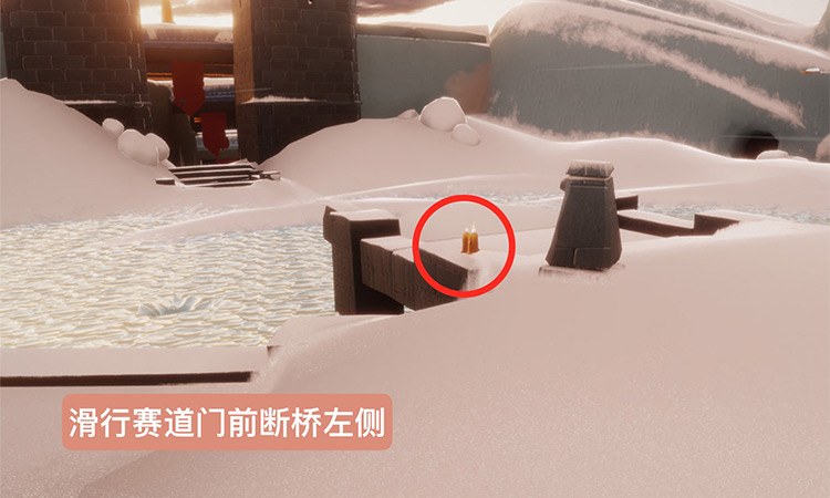 季节蜡烛溜冰场的断桥上,位于滑行赛道门前的断桥左侧。