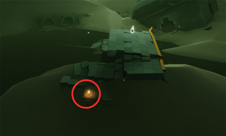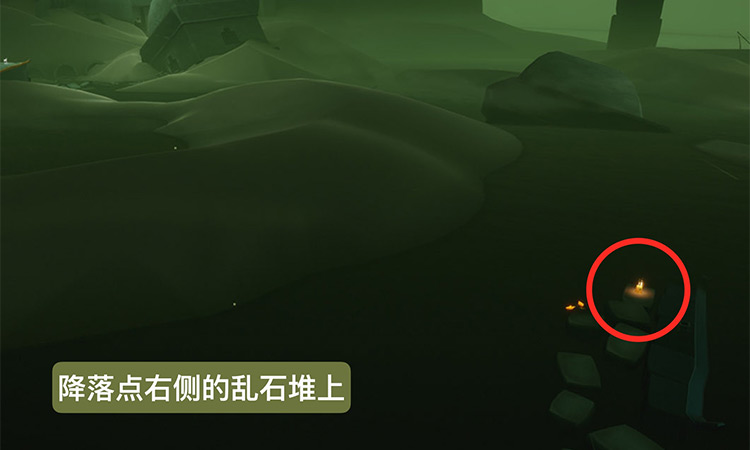 季节蜡烛在荒漠降落点右侧的乱石堆上,前往小船的地方。