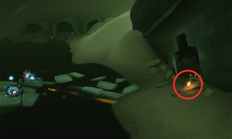 季节蜡烛在最右边的管道上,前往一龙图入口的地方。