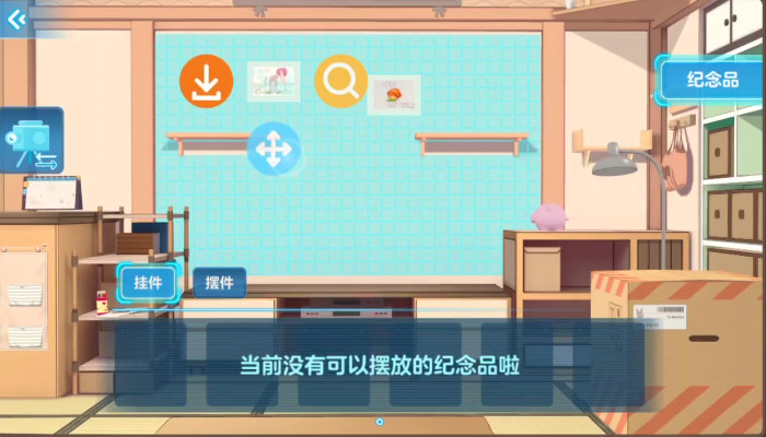 将纪念品简单摆放好之后,我们需要将纪念品移动到想要设置的位置,纪念品分为挂件还有摆件,玩家可以将挂件挂在屋内的背景墙上还有卧室的墙上,对于摆件,摆放的位置就更多了,可以放在背景墙挂件的下边,使室内环境温馨舒适,还可以放在卧室的床边上当做小装饰。