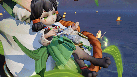 主动使用:小松丸跃向指定方向或默认选择最近的友方式神,和他建立依赖关系并提升双方30%移速,持续1.5秒,同时小松丸会在原地留下一颗与2技能等级相同的松果炸弹。移速加成会随时间衰减。