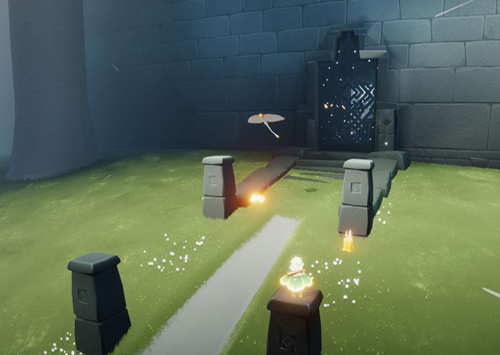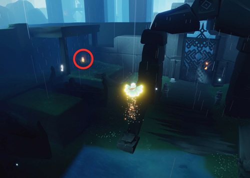 季节蜡烛在最后一扇大门前方,位于右边的树桩底下。